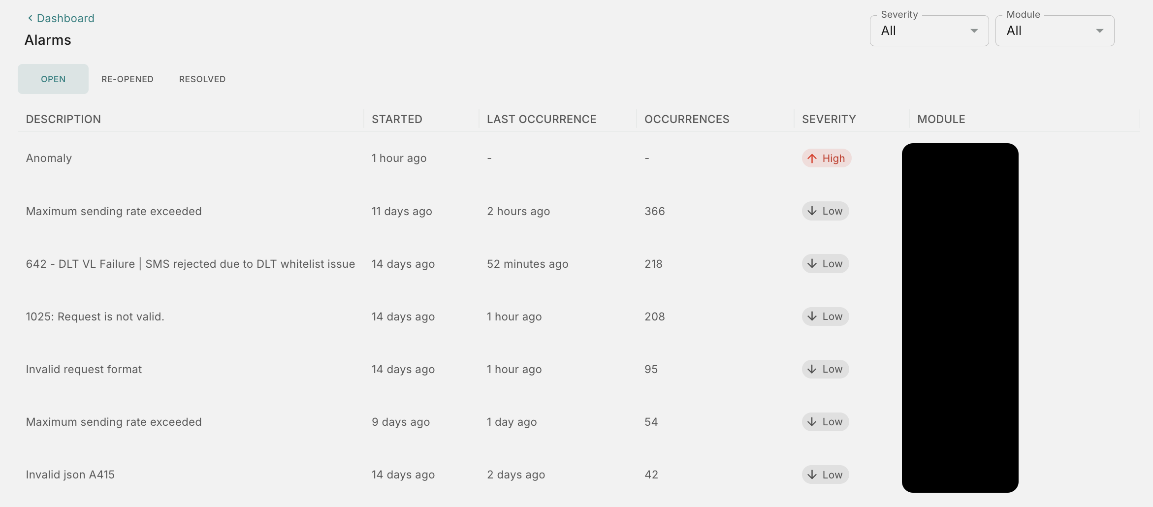 - Reopened - Alarms which are resolved in the past but occurred again.