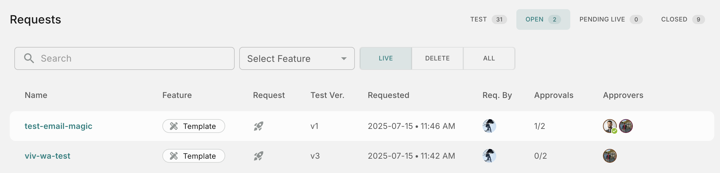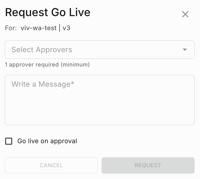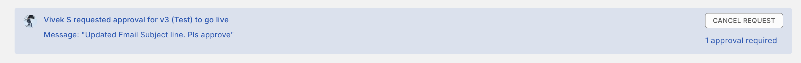You will see the below popup once you click ‘Go Live’ . Select approvers from the ‘From’ dropdown. You can choose one or more approvers. You need to write a short message mentioning the reason for approval request. If you select ‘Go Live on approval’, the feature will go Live once the approver approves the request. Clicking ‘Send for Approval’ will send the request.