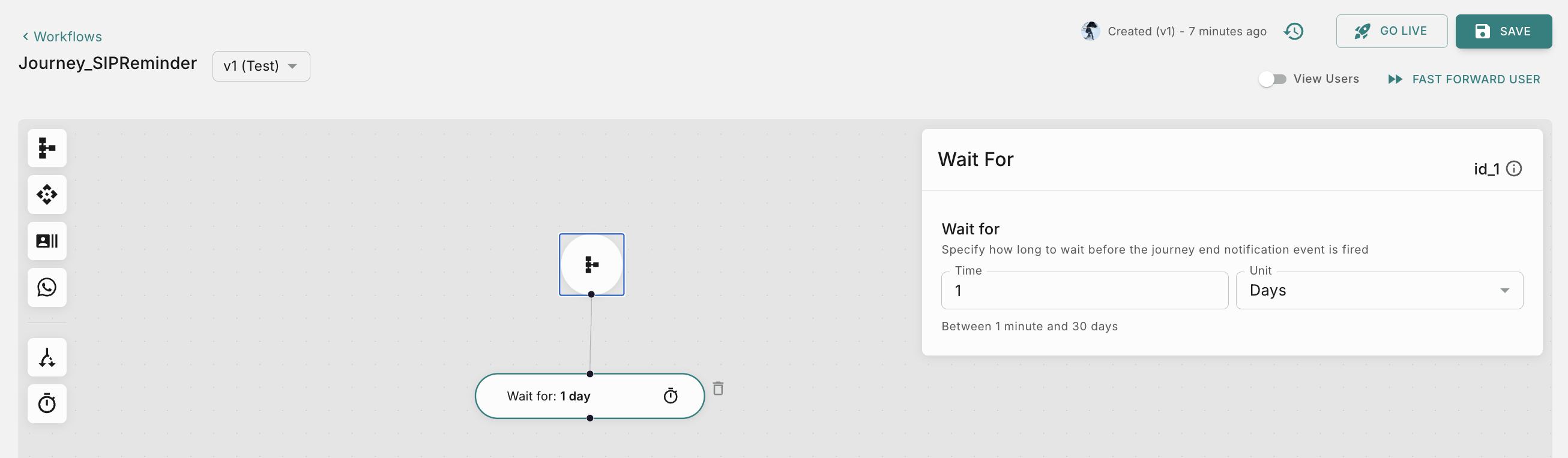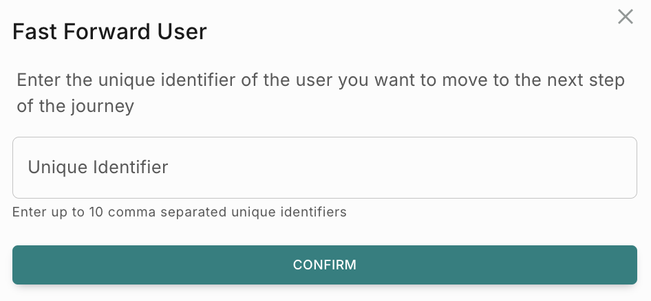 The ‘Fast Forward’ feature helps you to move the users to the next step in the journey, especially useful for testing workflows with wait times.