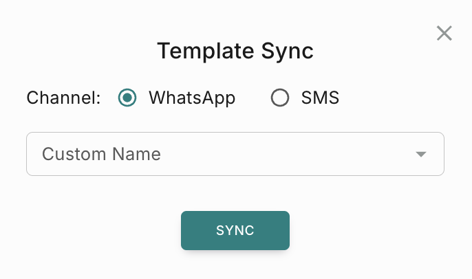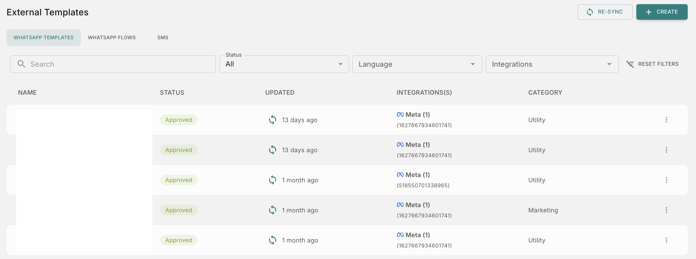 To re-sync a single whatsapp template, click re-sync icon next to the value in ‘updated’ column.
