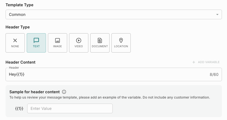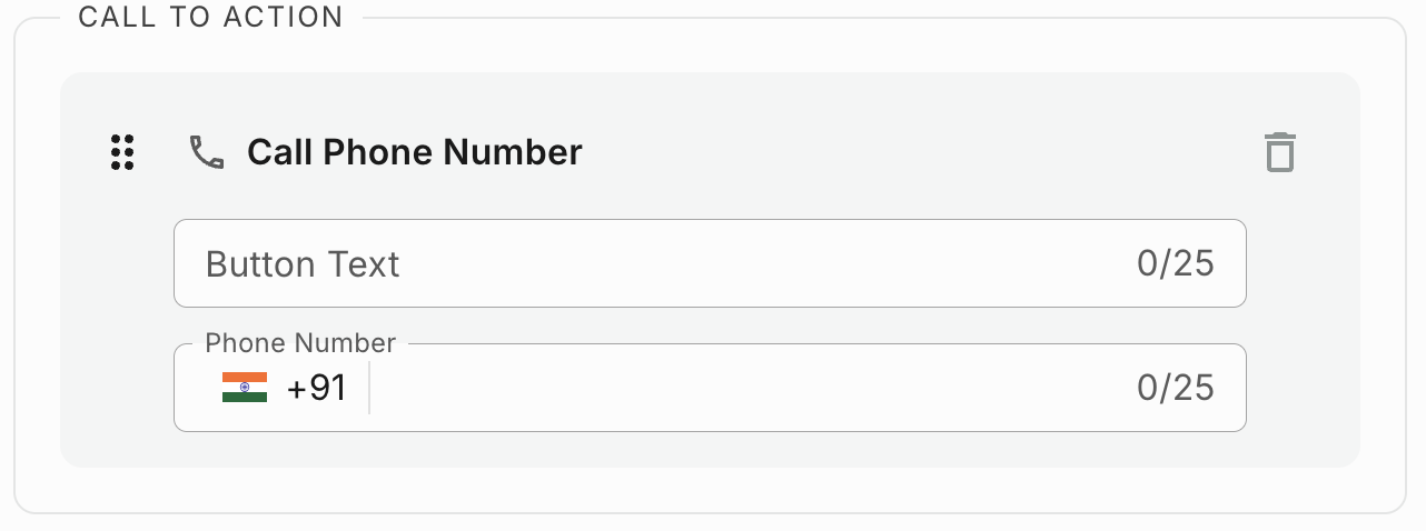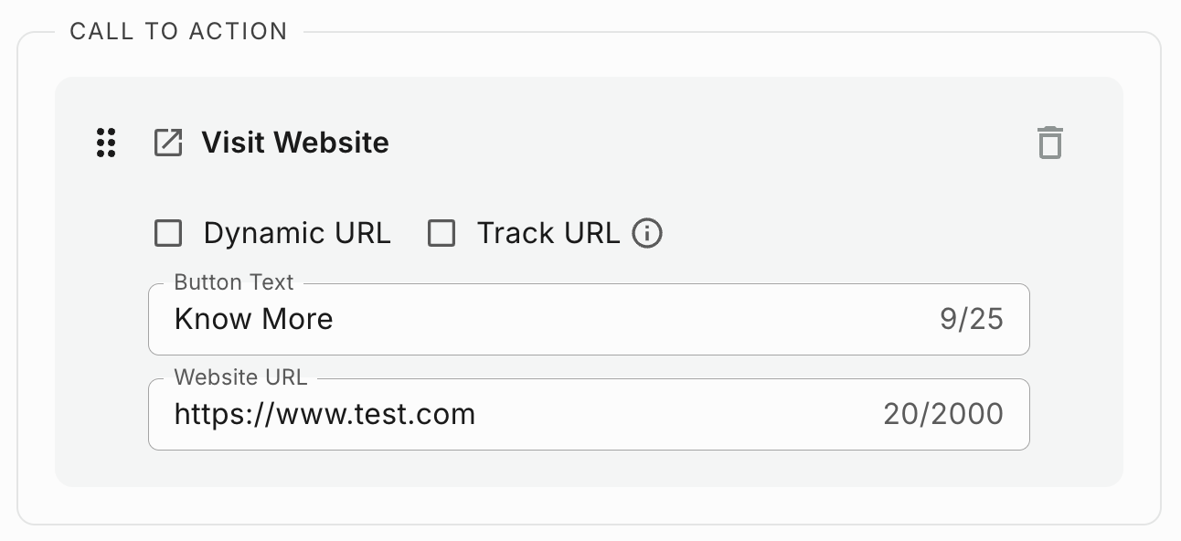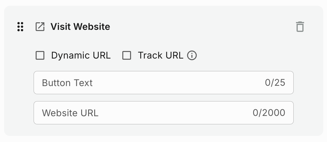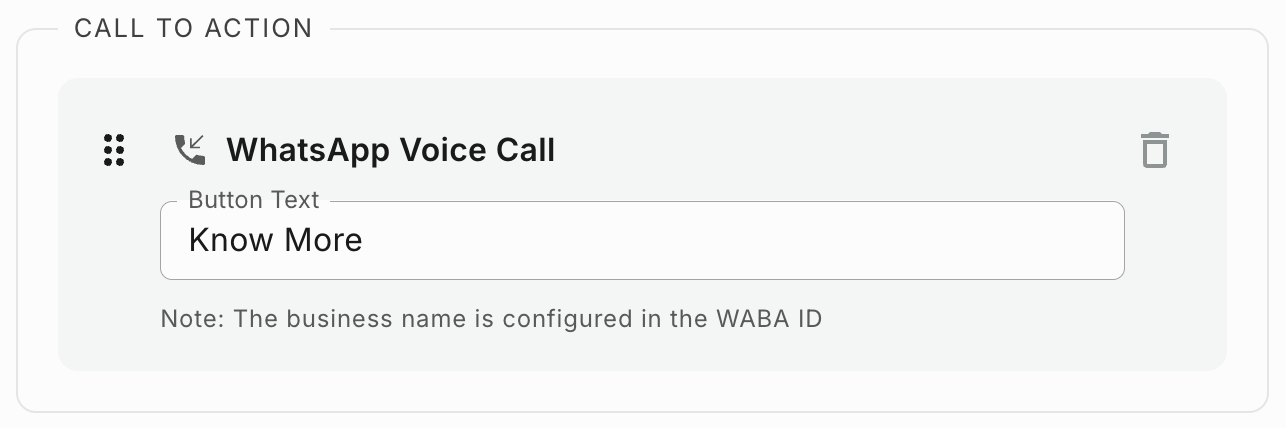 Buttons let users respond or take action directly from WhatsApp. You can add different button types depending on your use case.