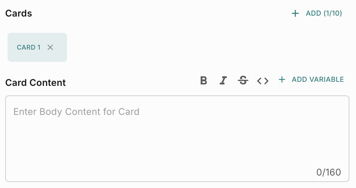 When you want to send a swipeable message containing multiple cards, each card acts like a mini message with its own content, media, and buttons.