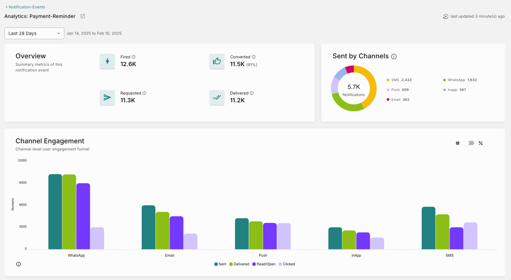 You can get deeper analytics like delivery and open rates for each notification event from your Notification Event Analytics section.