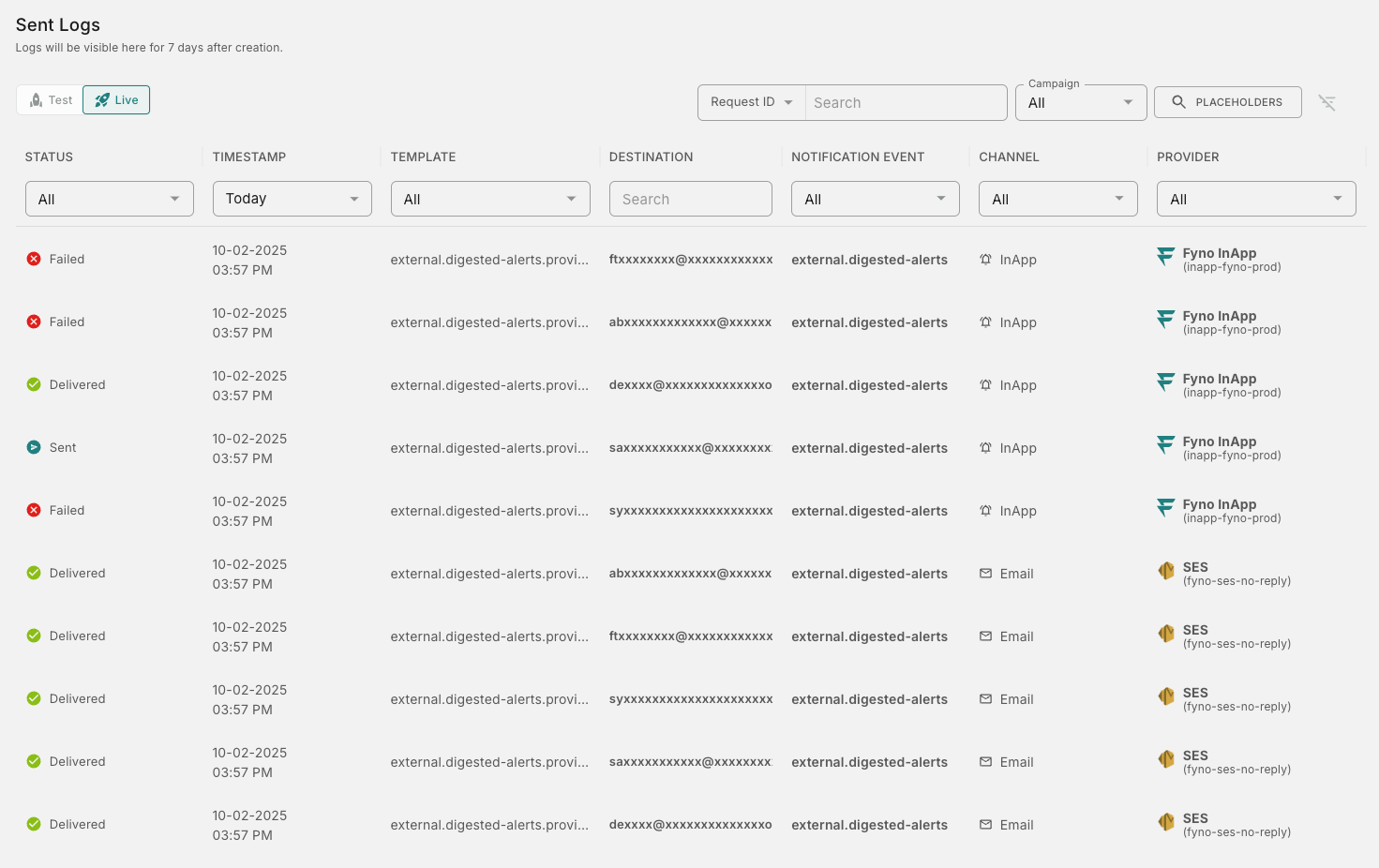 With Fyno all set and active, your notifications will now seamlessly flow across channels to your customers.