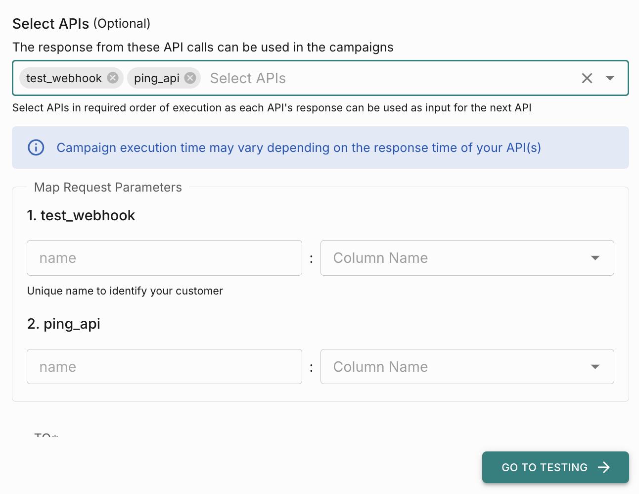 If there are any placeholders present in the API Request, then its recommended to add a description for the same. This will help your marketing/product teams to use these parameters properly in campaign. Click Continue.