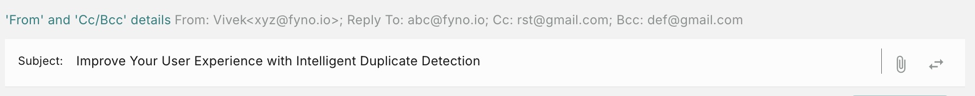 Within the integrations popup, include ‘from_email’ as shown below. In this example, tech@fyno.io will serve as the default From Email if the provided email ID in the payload is not valid. If you prefer not to use the default email, simply specify ‘from_email’ in the respective field.