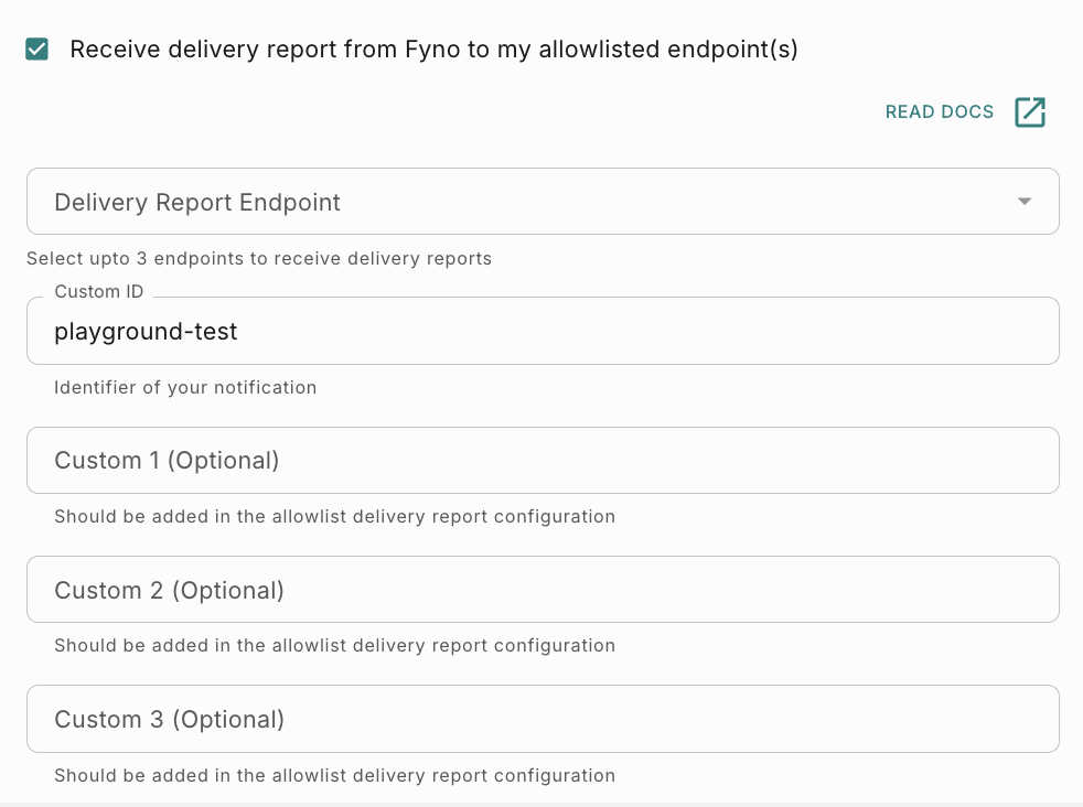 - From Allowlist - Selecting Delivery Report Endpoint(s) from Verified Allowlist URLs (Maximum 3 can be selected).