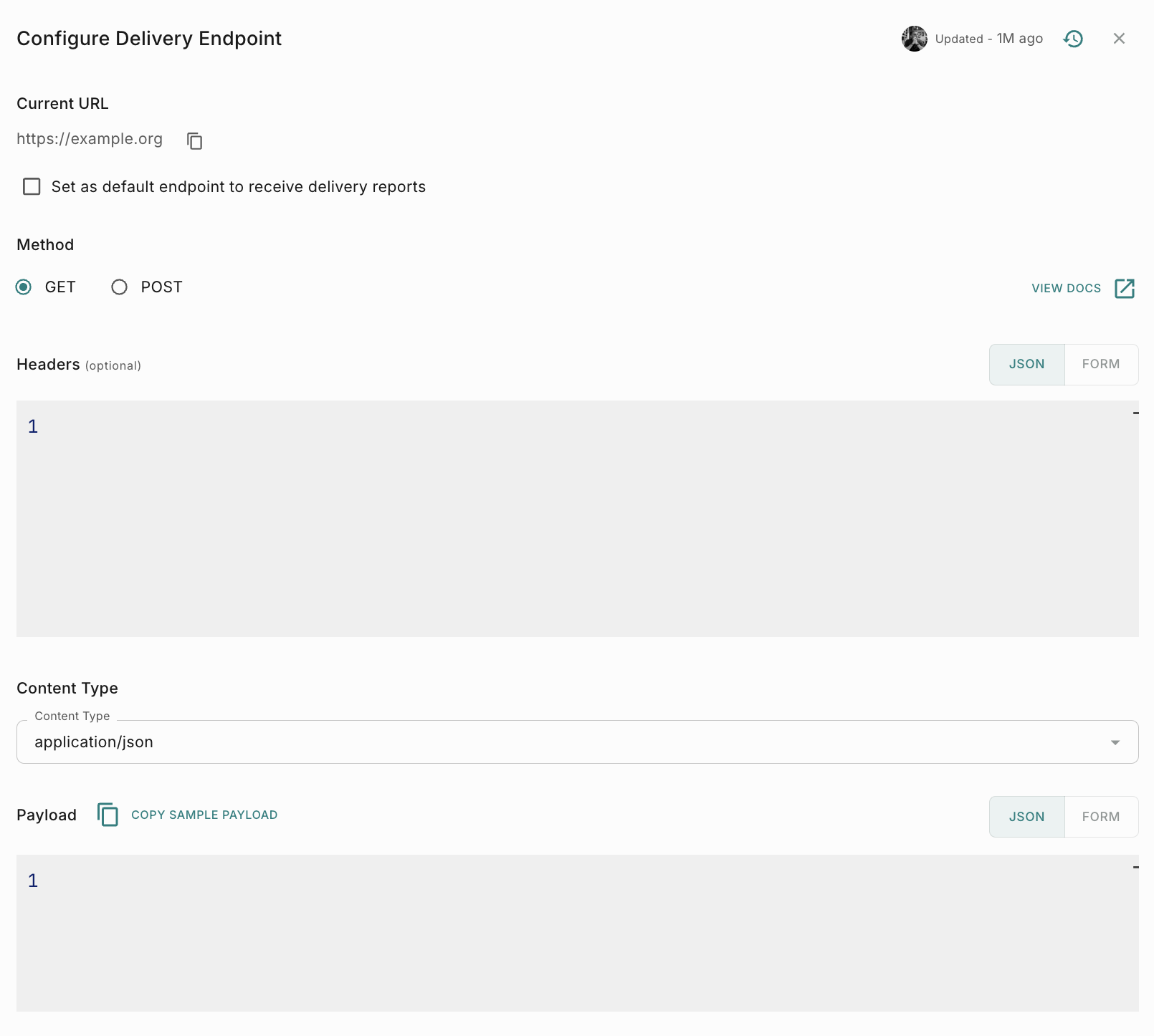 Once the Delivery Endpoint URL(s) is selected, 3 additional placeholder details need to be configured.