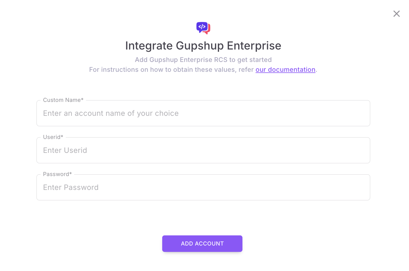 - UserID: The CustomerID that is displayed on your Gupshup Enterprise Account when you log in and view the dashboard