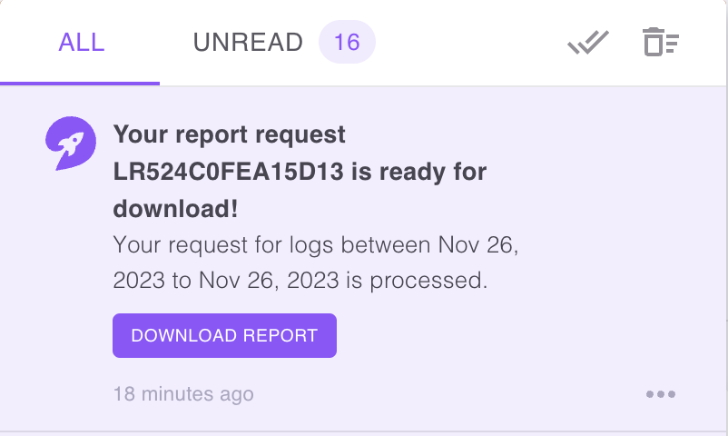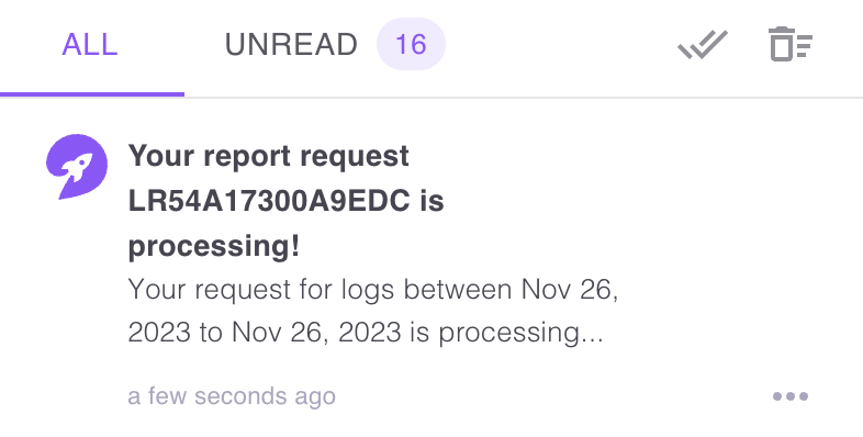 You will get an InApp notification with the message “Your report request xxxxxx is processing!” as shown below.