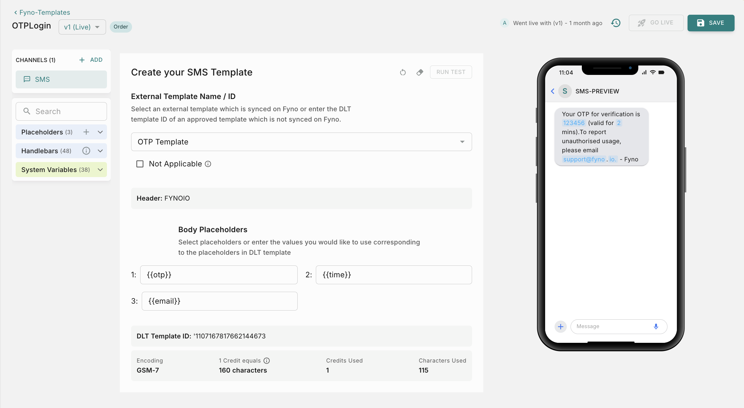 Creating Templates for SMSes has been made super simple with Fyno’s template feature.