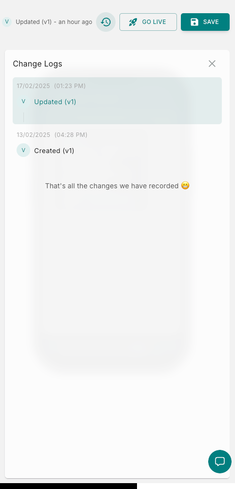 To do so, locate the history icon positioned at the top right corner of the template page, as shown in the image below, and click on it to view the change logs.