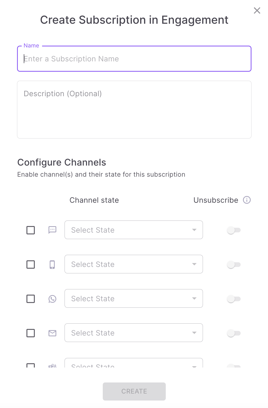 Select default state for each channel. All the channels with at least 1 integration will be available for selection. You can select one of the states - Required, ON or OFF.