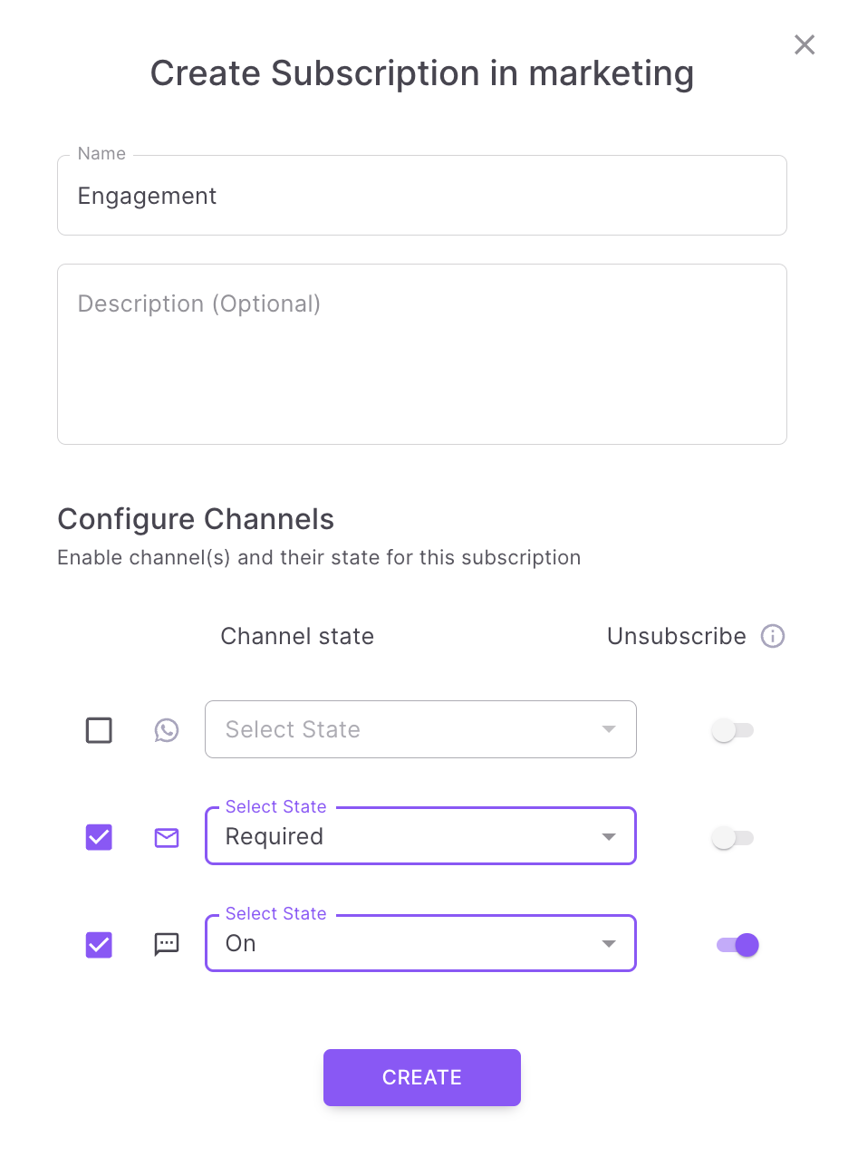 For example, if you want to opt-out of WhatsApp across all Subscription Topics, do the following.