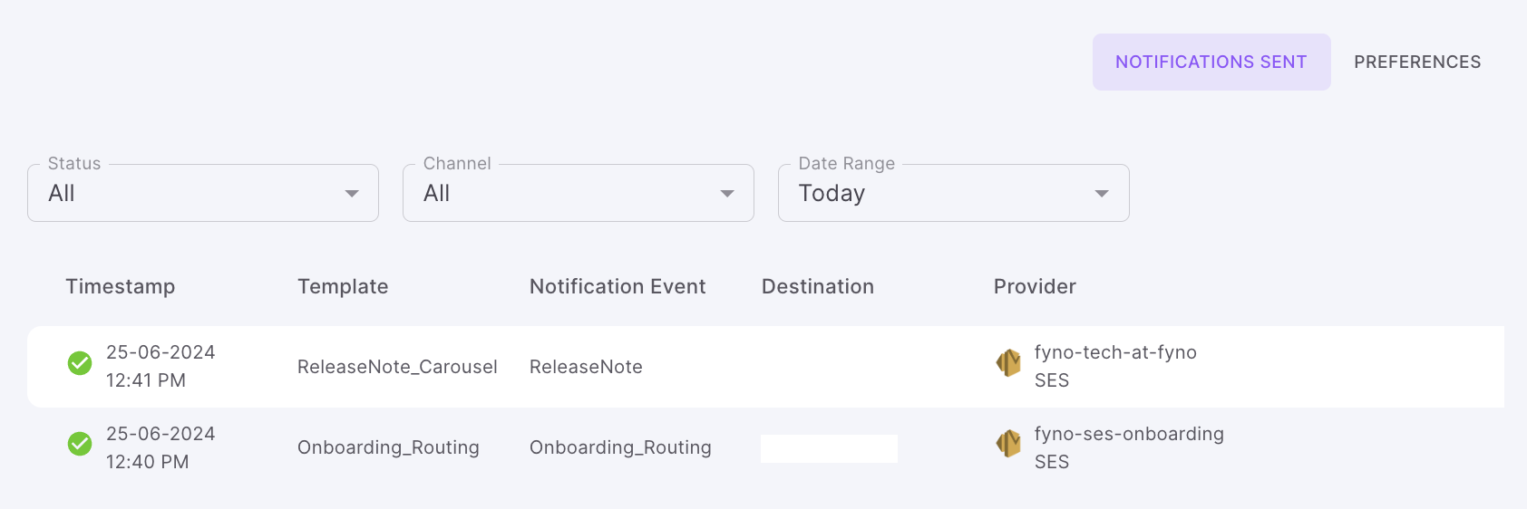 You can filter using User status, Channels or Date Range. You will be able to see the notifications sent data for the last 7 days only. Clicking on any notification sent will show you the detailed sent logs popup.