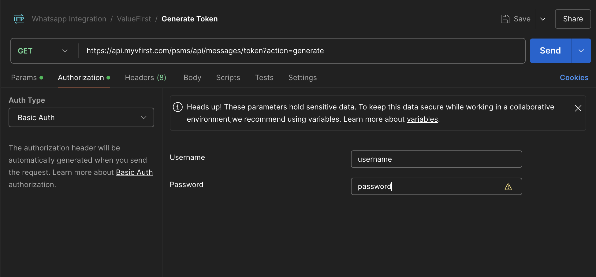 - Username: Provide the username that you use to sign into your ValueFirst Account.