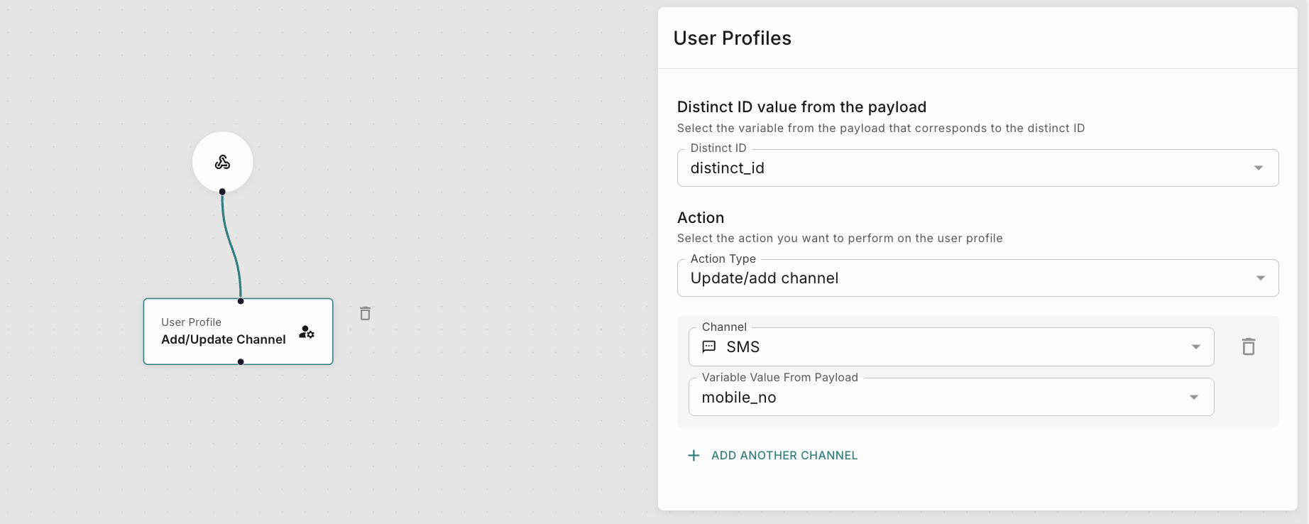 - Variable value from payload : If you want to update SMS channel, then select mobile number from the payload.