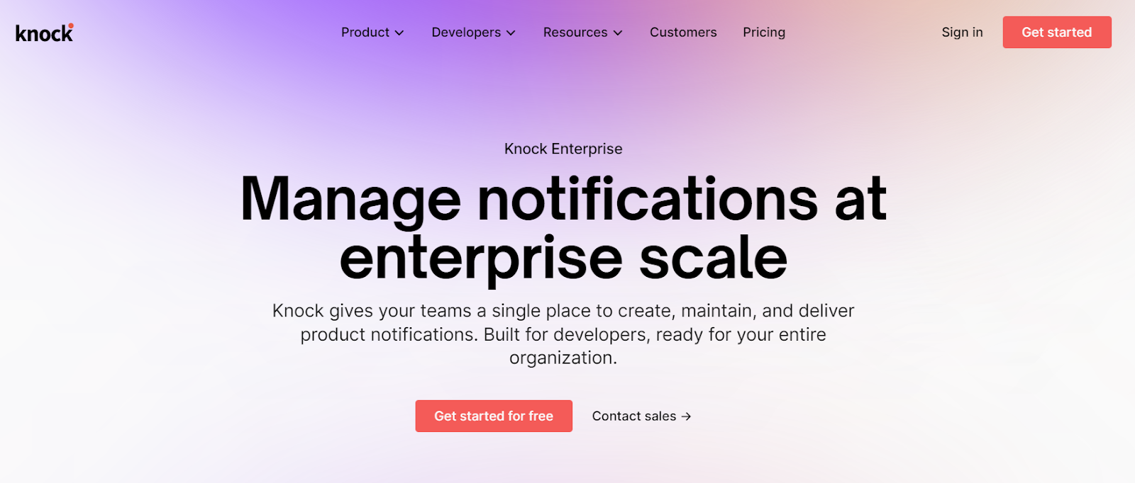 Knock, an API-driven solution that takes scalability seriously when it comes to notifications. Knock equips you with the tools to engage users seamlessly across various channels and manage intricate cross-channel workflows. It's designed with a set of essential building blocks that allow you to craft sophisticated notification logic and deliver messages at times that suit your users' preferences.