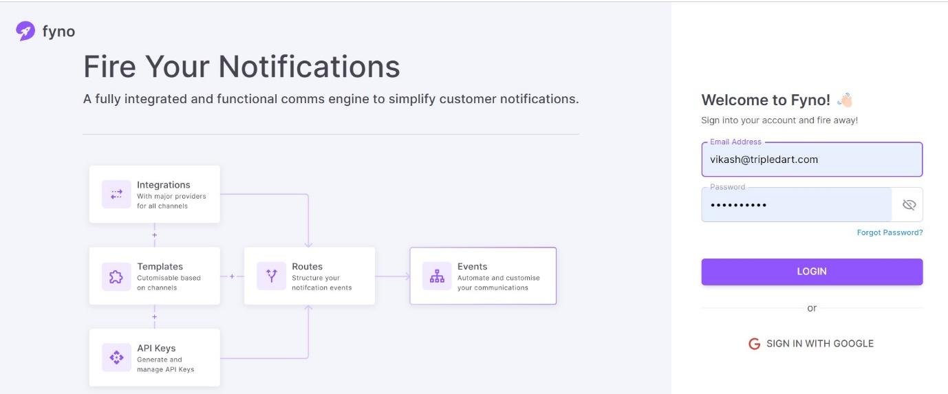 Once you land on the “Welcome to Fyno” page, enter your Email Address and Password.