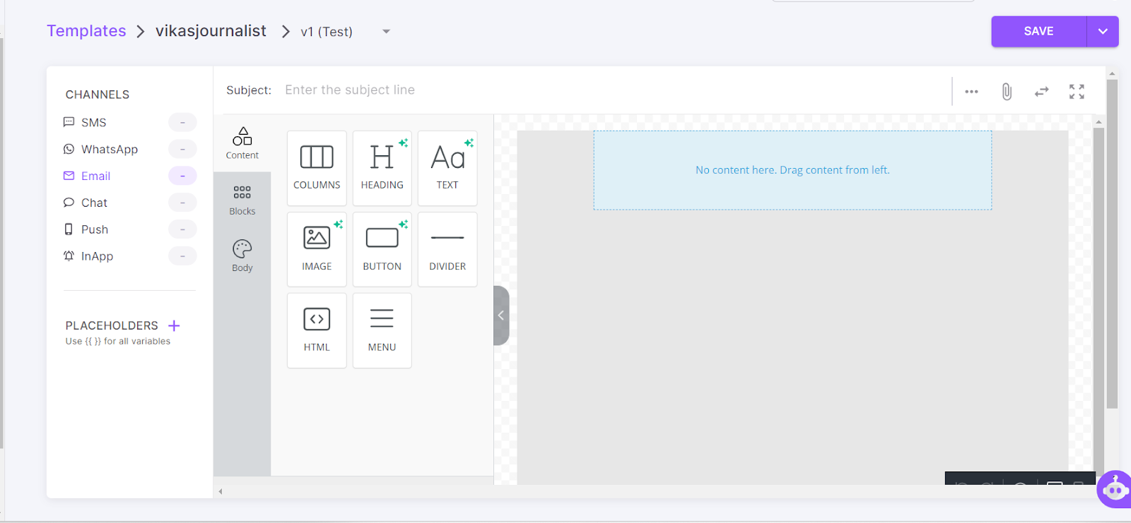 Fyno allows you to create and store all your messaging content in one place. You can customize everything—the number of columns, headings, text, buttons, dividers, images, or a host of other things—without coding.