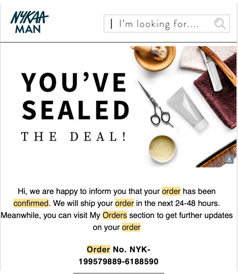 Order confirmation emails